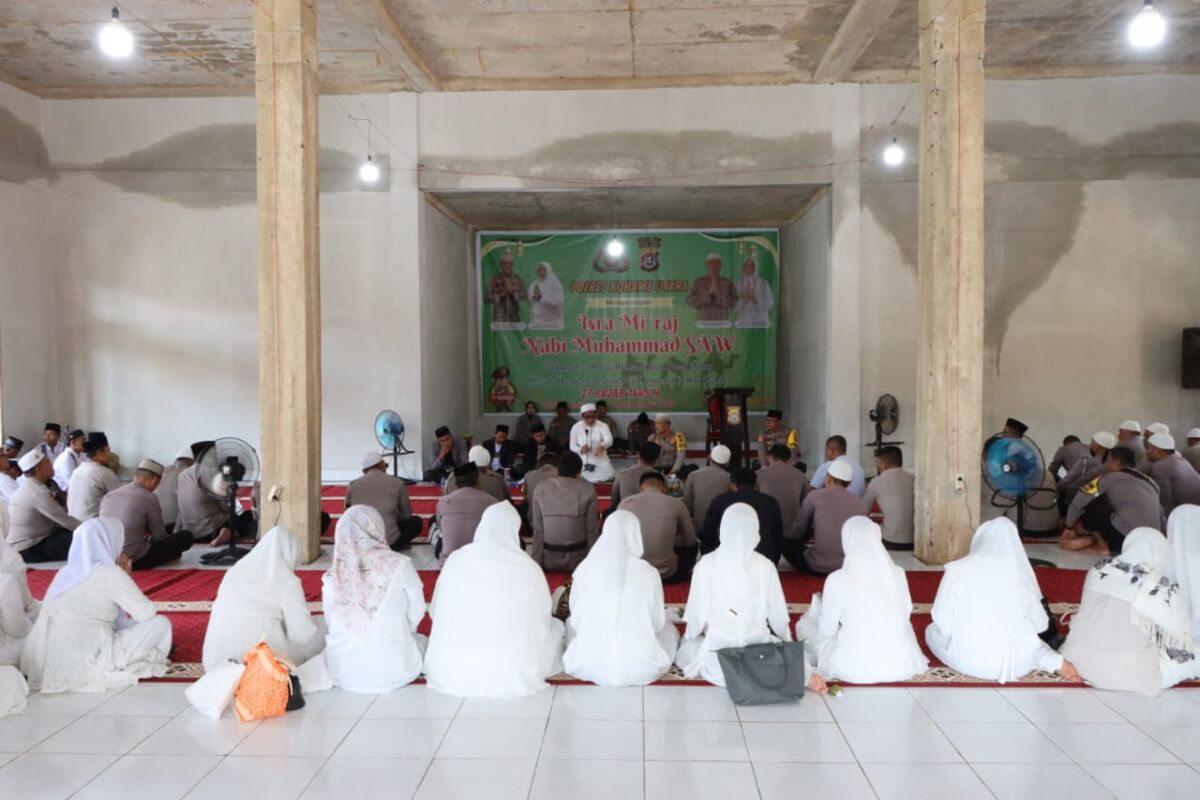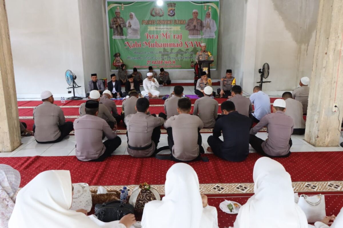 Kepolisian Resor Konawe utara dipimpin Kapolres AKBP Priyo Utomo, S.H., S.I.K melaksanakan peringatan Isra Mi’raj di Mesjid Miftahul Faidzin dengan Tema “Hikmah Isra Mi’raj Menanamkan Moral dalam Mewujudkan Polri Presisi Siap Mengawal Pemilu Damai” Kamis (8/2/24)