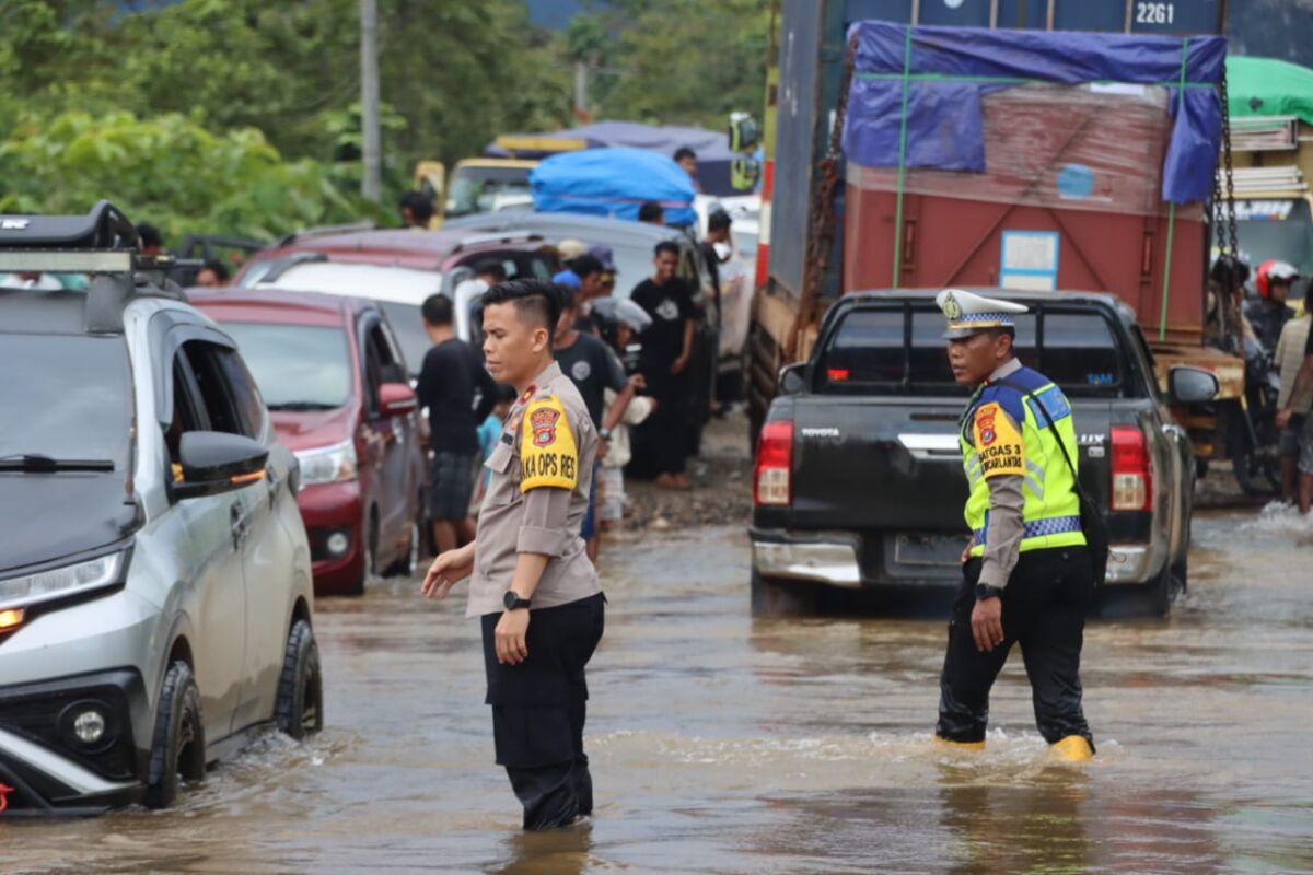 Kasat Lantas AKP Suhermin, S.H., M.H yang sejak banjir pertama terus mengapdate perkembangan kondisi banjir dan melakukan pengaturan, pelayanan serta himbauan agar masyarakat berhati-hati dan mengutamakan keselamatan diri “pungkasnya.