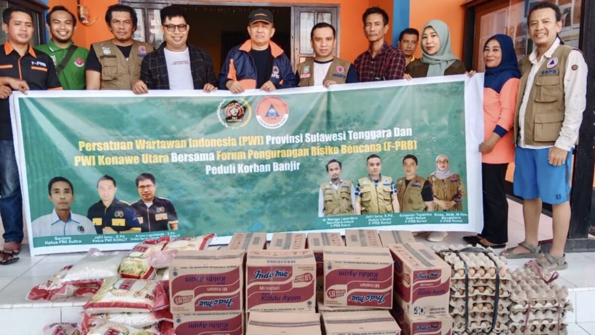 Lintasoheo.com | Konut – Situasi banjir yang melanda beberapa wilayah kecamatan di Kabupaten Konawe Utara (Konut), Sulawesi Tenggara (Sultra), juga menjadi perhatian dari organisasi Persatuan Wartawan Indonesia (PWI) Sultra dan Forum Pengurangan Risiko Bencana (F-PRB) Konut.