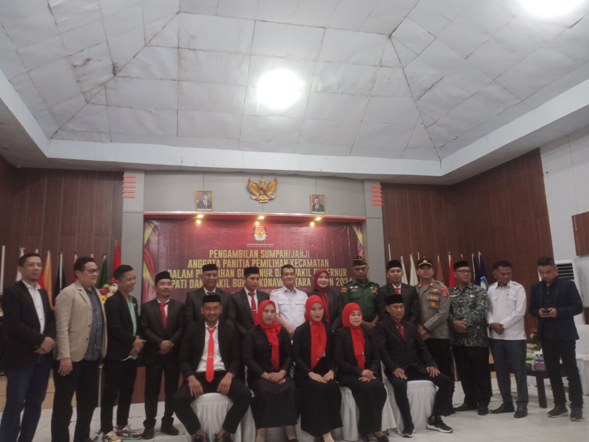 LintasOheo.com | Konut – Komisi Pemilihan Umum (KPU) Kabupaten Konawe Utara (Konut) menggelar sumpah dan janji jabatan Panitia Pemilihan Kecamatan (PPK) di Pilkada Konut 2024.