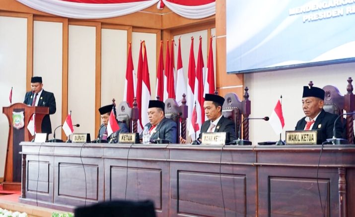 Rapat paripurna dipimpin langsung oleh Ketua DPRD Kabupaten Konut, Ikbar,SH.,MH didampingi sejumlah pimpinan DPRD dengan dihadiri Bupati Konut H. Ruksamin, Wakil Bupati Konut, H.Abu Haera Forkopimda, Pimpinan Organisasi Perangkat Daerah dan unsur Forkopimcam.
