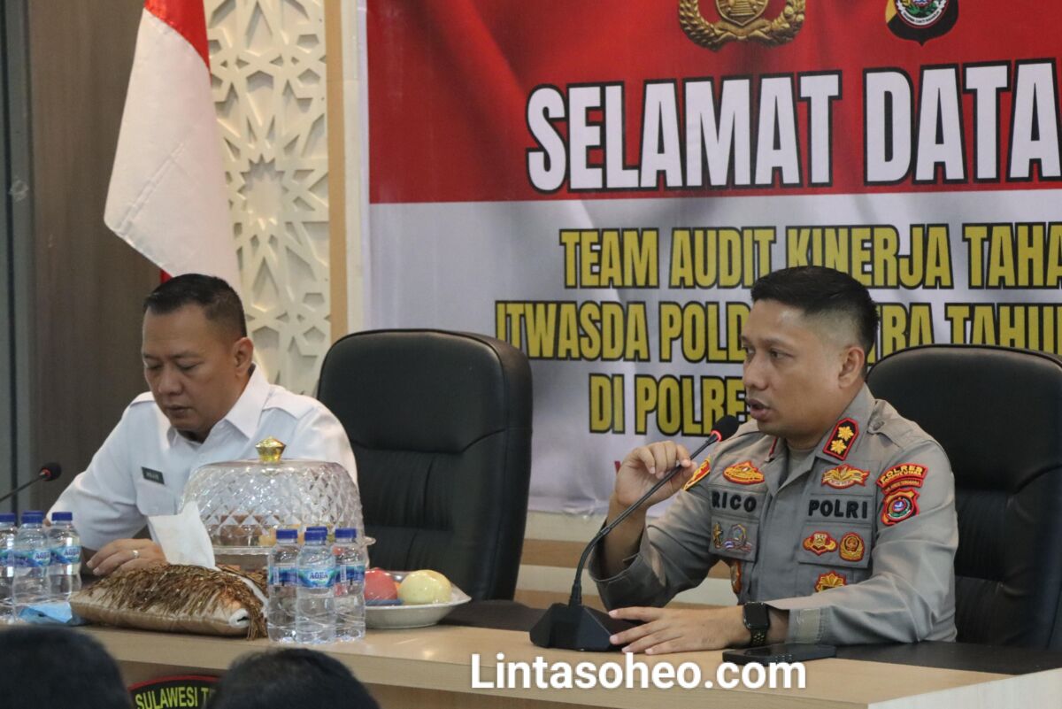 Audit kinerja tersebut diawali dengan sambutan Kapolres Konawe Utara AKBP Rico Fernanda, S.H., S.I.K., M.H., dan Pengendali Teknis Tim 2 Itwasda Polda Sultra Kombes Pol. Santiaji Kartasasmita, S.I.K.. Hadir pula Wakapolres Kompol Sumarso, S.Sos., para pejabat utama, serta para Kapolsek jajaran.