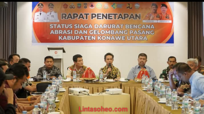 Lintasoheo.com | Kendari – Bupati Konawe Utara, H. Ikbar, memimpin langsung Rapat Penetapan Status Siaga Darurat Bencana Abrasi dan Gelombang Pasang Kabupaten Konawe Utara yang digelar di Hotel Claro Kendari, Jumat (26/9/2025).